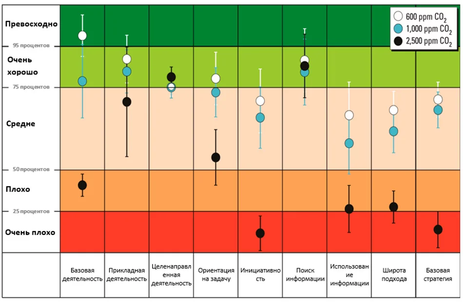 - При показателях выше 1000 ppm наши когнитивные функции значительно ухудшаются‚ и мы чувствуем усталость.