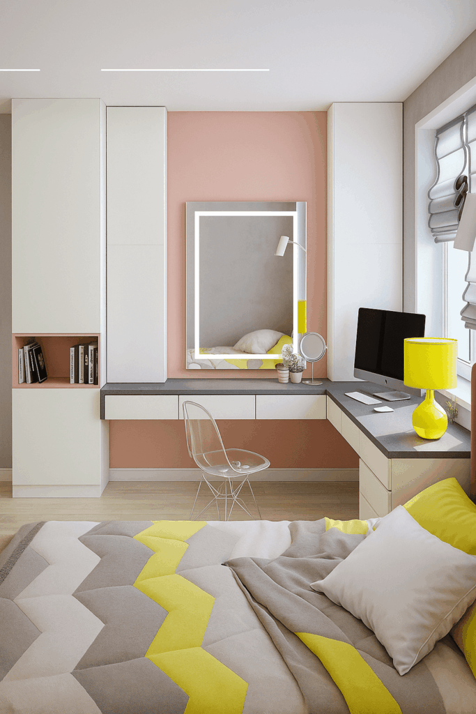 - Создание функциональной зоны — делим пространство на рабочую‚ зону для отдыха и хранения вещей.