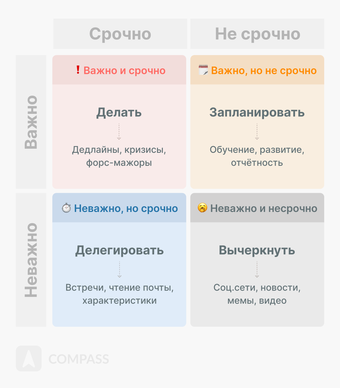 | Метод Eisenhower | Приоритизация задач по важности и срочности. | Помогает сосредоточиться на действительно важных делах. |