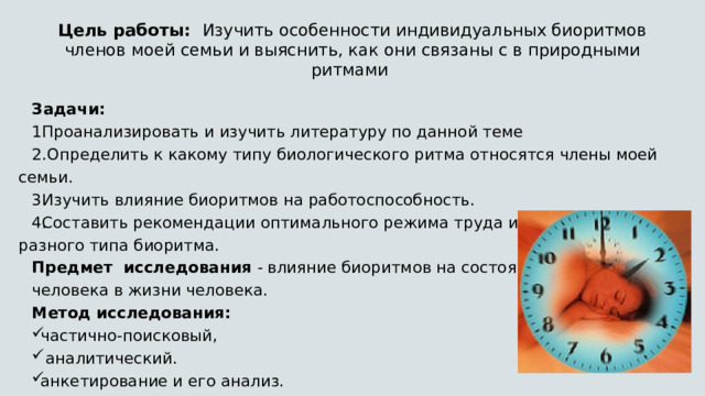- Основные этапы суточного цикла организма