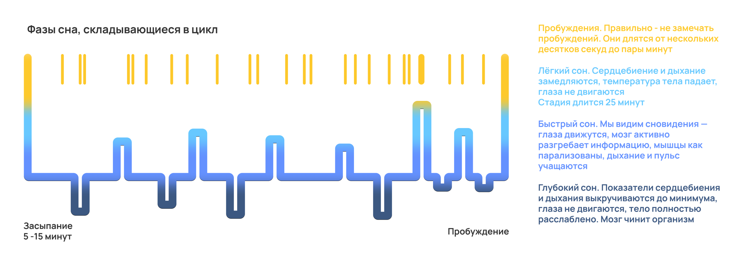 - Долгосрочная память: Обработка и закрепление большой массы информации происходит преимущественно во время сна.